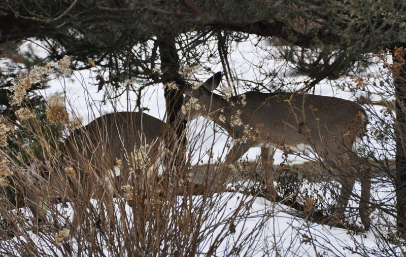 That last photo is really something, what a cheeky deer. Last week when mom was putting the lights on the deck she heard some tippie tapping going on up the street and then she looked up and saw a whole herd of about 6 deers casually frolicking across the street from one woods hangout to the other. They are scary but the worst part is that they are so spaced out all the time like they are on another planet unaware of anything really...